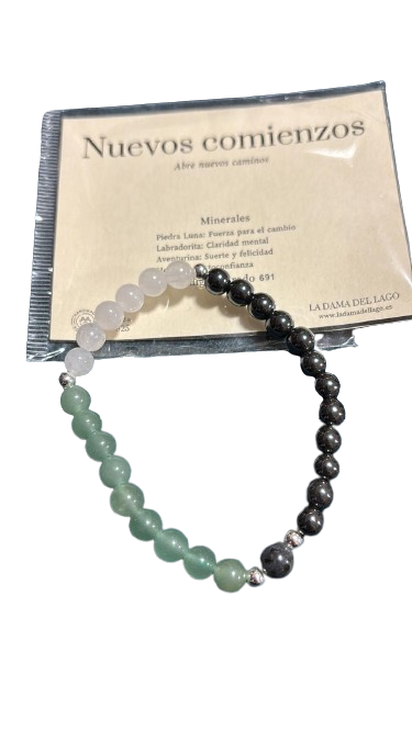 Inicia una nueva etapa en tu vida con la Pulsera Nuevos Comienzos, diseñada para acompañarte en procesos de cambio y transformación. Con piedra luna que simboliza fuerza para el cambio, labradorita para claridad mental y aventurina para atraer suerte y felicidad, esta pieza es perfecta para quienes buscan renovarse y atraer energía positiva. Los detalles en plata 925 aportan un toque sofisticado, haciendo de esta pulsera un accesorio único para quienes valoran la espiritualidad y el equilibrio personal.
